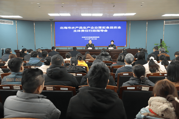 2026年1月23日,北海市市场监视办理局组织召开全市水产物出产企业落实食物平安从体义务行政指点会。会议深切贯彻国务院食安办关于 2026 年除夕、春节及全国 “” 期间食物平安工做摆设,严酷落实食物平安 “四个最严” 要求,以食物平安为基石赋能财产升级,鞭策北海水产成品财产高质量成长。市市场监管局党组、局长张前海出席会议并做环绕落实食物平安从体义务开展行政指点,市市场监管局相关分担带领、食物药品平安总监,相关科室及各县区市场监管局担任人,全市128家水产成品出产加工企业担任人参会。