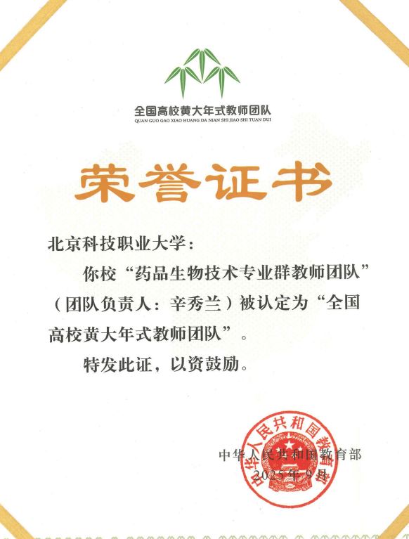 12月,学校生物工程学院药品生物手艺专业群教师团队被认定为第三批“全国高校黄大年式教师团队”。