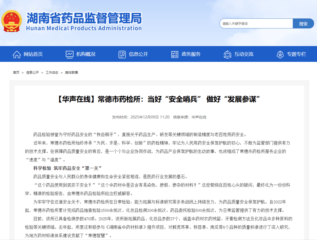 药品查验被誉为守好药品平安的“铁齿铜牙”,间接关乎药品出产、研发等环节范畴的制制精度取老苍生用药平安。近年来,常德市药检所一直传承“为平易近、求是、科学、立异”的药检,服膺为人平易近用药平安保驾护航的初心,不竭为监管部分供给无力的手艺支持。正在保障药质量量平安的背后,是一个个取企业协同做和,为药品财产保驾护航的活泼故事,也浓缩成了常德市药检所办事企业的“速度”取“温度”。